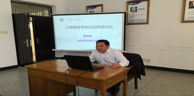 4月13日下午,威廉希尔中文官网邀请公司测绘工程学院经理焦明连教授做关于专业认证的专题报告。报告由威廉希尔中文官网经理王经卓主持,威廉希尔中文官网全体教职员工共同聆听了报告。