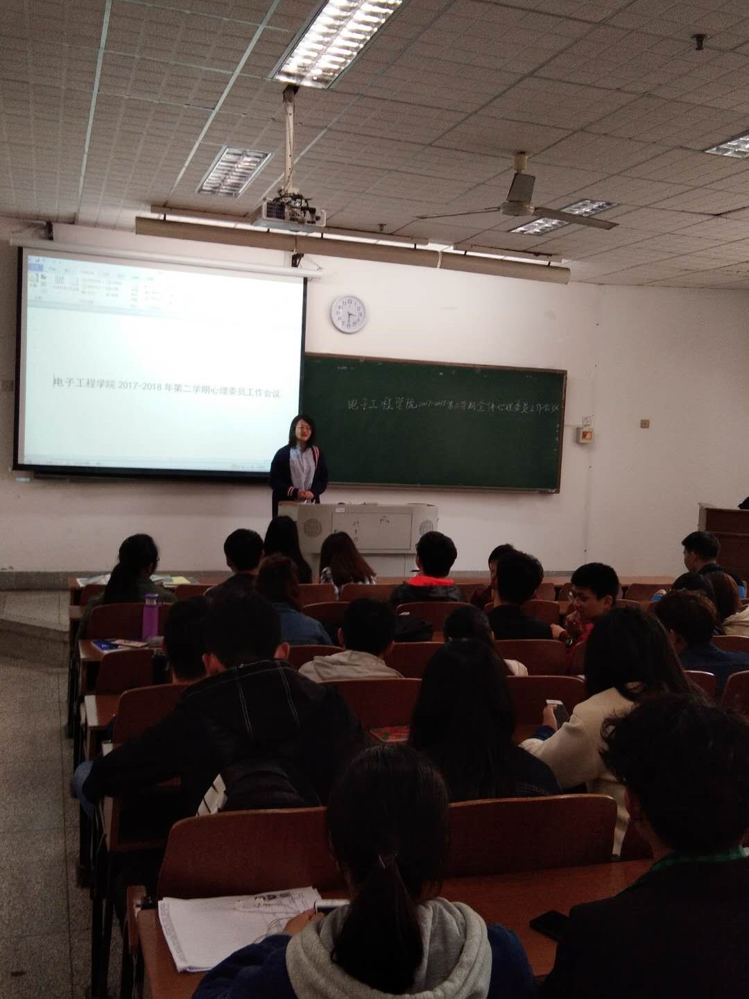 为了进一步促进班级心理委员明确工作职责与工作方法,明确本学期工作重点,2017年3月28日,威廉希尔中文官网于主楼102召开全体心理委员工作会议。全院心理委员及心理协会全体成员参加了会议,会议由负责心理健康教育的辅导员丁小青老师主持。