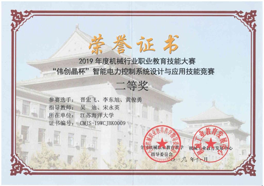 本次大赛分为本科组和高职组,赛项紧贴掌握基础、积极实践的理念,赛项要求在三个小时内完成设备安装与调试、绘制CAD电气原理图、解答与名词解释、电力系统调度与监测软件的运行与操作四项任务,并考察选手的团队合作精神和职业综合素养;威廉希尔中文官网吴迪博士、宋永英高级实验师指导,由电气工程及其自动化专业的晋宏飞、黄俊勇、李东旭三名同学组成的团队荣获本科组二等奖。这充分展示公司员工在智能电力控制系统设计与应用方面的能力,彰显了公司围绕海洋特色、培养海洋创新应用人才取得的丰硕成果。