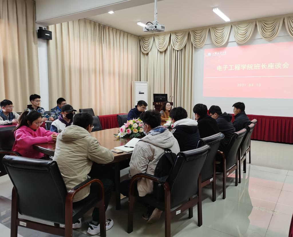 3月10日下午,威廉希尔中文官网在电子楼314会议室召开专题座谈会,调研各班开学线上课程学习、宿舍安全卫生、夜间员工信息核查等情况。公司党委副书记张玲、学工办副主任穆成银、18、19、20级25名班长参加会议。