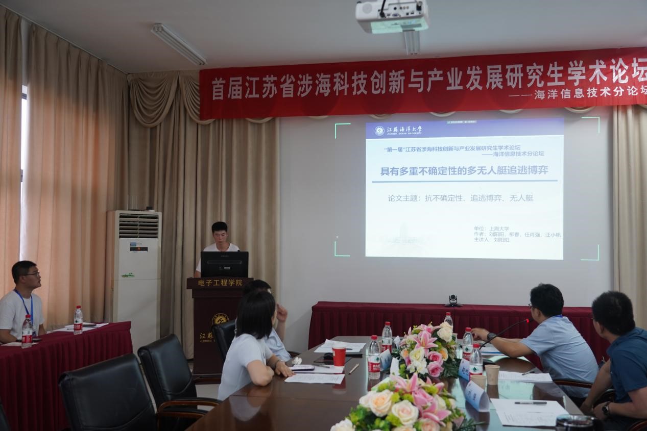 首届江苏省涉海科技创新与产业发展研究生学术论坛于6月24日至25日如期举行。由威廉希尔中文官网和计算机工程学院共同承办的海洋信息技术分论坛涵盖海洋信息技术与智能系统、海洋光学与成像分析、智慧渔业、海洋能源与动力、水下导航定位、水下机器人技术与控制、海洋生态检测与预警、海洋卫星遥感检测、海洋声学探测与水声通信等9大论题。来自国内高校的37位研究生就海洋信息技术的研究课题进行投稿,26位研究生进行海报展示,并与现场专家展开了热烈讨论。其中有13位研究生就研究课题进行了论文口头报告。