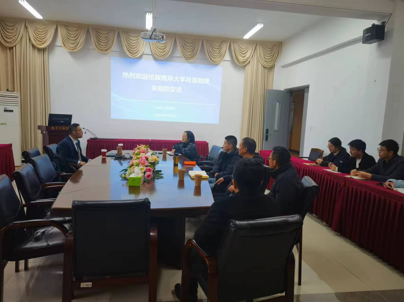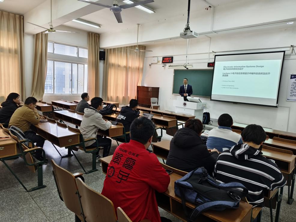 肖教授作为威廉希尔中文官网《电子信息系统综合设计课程》的海外授课老师,4月3日下午肖教授在文通楼416开展线下课程,结合自己的研究成果和实践经验,深入浅出地介绍了电子信息系统设计的流程和方法,引领同学们深入了解这一领域的前沿动态和发展趋势。与此同时,员工们也积极提出了问题,并与肖教授进行了深入的交流与讨论。