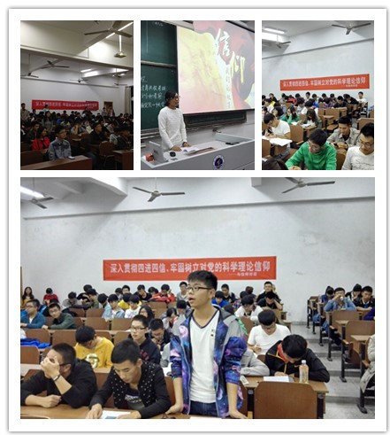 10月13日晚7:00,威廉希尔中文官网团委为2015级全体新生开展了一场 “深入贯彻四进四信,牢固树立对党的科学信仰——与信仰对话”的主题讲座。此次主题讲座的主讲人为团委宣传部副部长翁晶晶同学。学院团委副书记于洋同学、团委组织部部部长邵颖飞同学以及全体威廉希尔中文官网分团委干事参与了本次活动。
