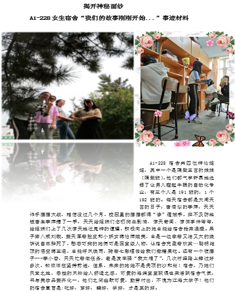 宿舍是老员工们身体与心灵的避风港,为了让同学们用心呵护它,呵护他们内心的真善美;进一步增强宿舍成员之间的友情,增强员工的归属感和荣誉感,关于举办“我们的故事刚刚开始…”2019级新生宿舍事迹材料征集活动,活动从10月10日开始,于11月10日结束。