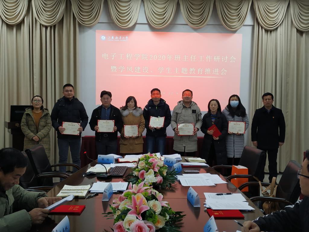 马志同为2019-2020学年考评优秀班主任胡全斌、栾晓东等九位老师颁发证书。张玲盘点了2020年学院员工工作,对学工战线的各位老师在疫情防控期间表现出的强烈的责任担当表示深深的敬意,对大家在一年工作的辛勤奉献表示真诚的感谢。班主任代表电子171班杨淼教授从员工干部的选配、特殊员工的关爱、培养员工学习自律、班级流动红旗举措等方面分享了带班经验。通嵌181班主任张之光老师从时刻是不理解、创造机会理解、共同承担苦难、一起规划未来交流了和员工共同成长的珍爱时刻。会议现场,大家就学风建设、诚信教育、提高员工安全防范意识、抓考研促就业、家校沟通、帮扶困难员工等方面的好举措、金点子进行了热烈的研讨。