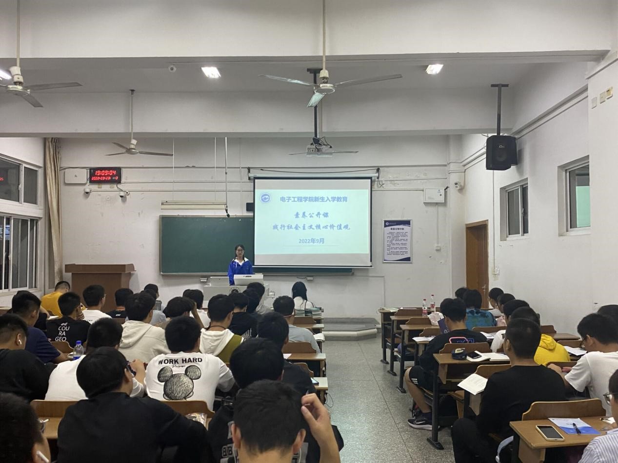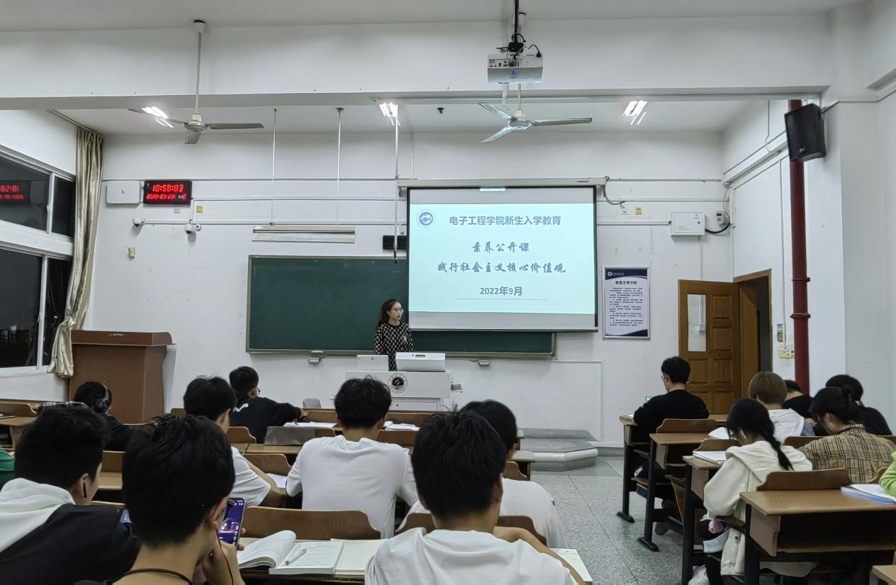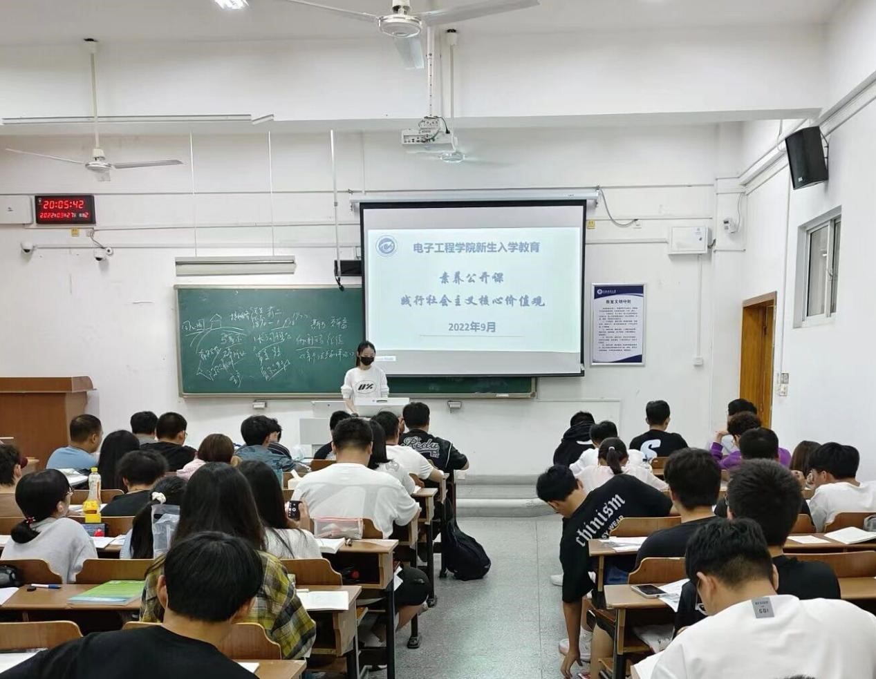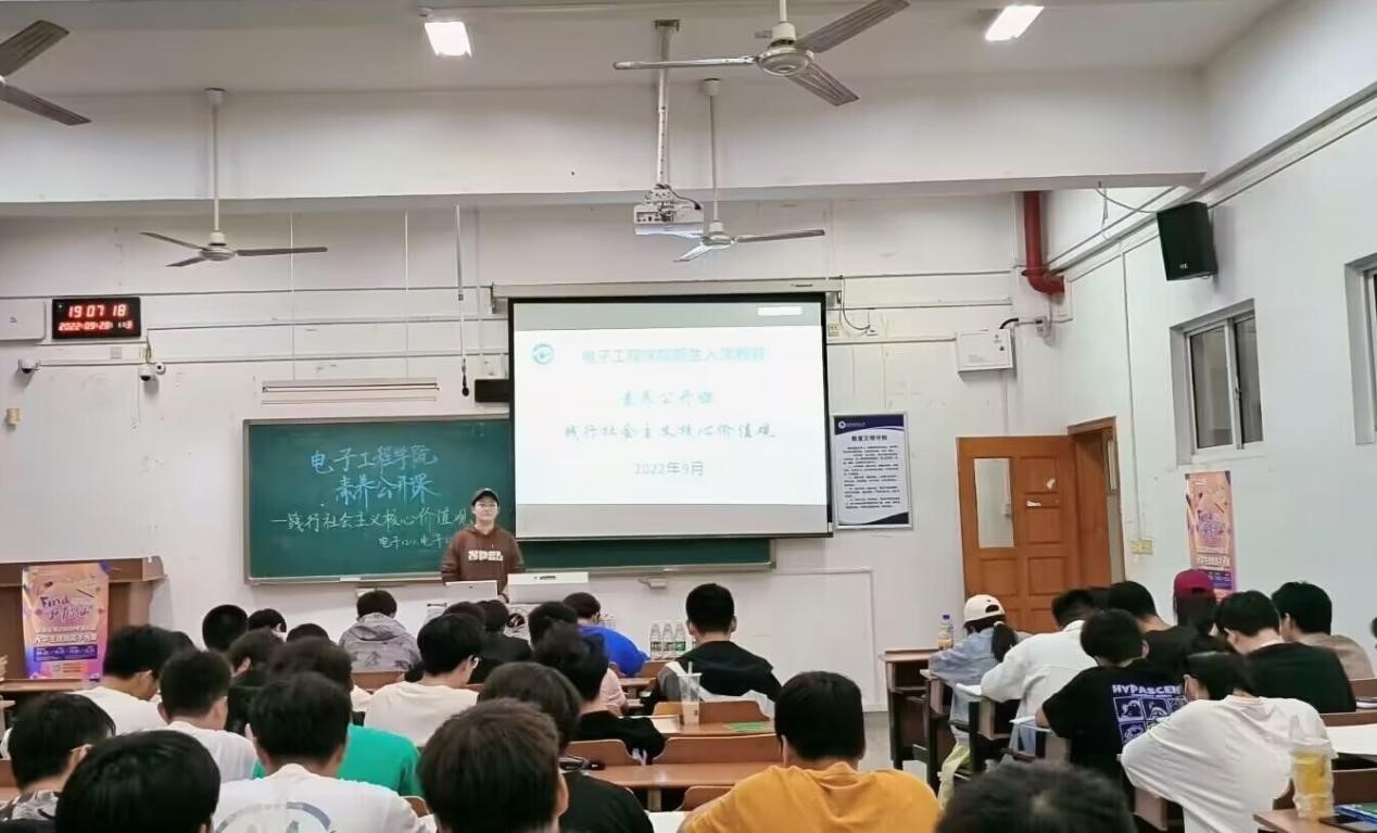 为引导2022级新生坚定理想信念,将爱国、敬业、诚信、友善更好地付诸于行动,威廉希尔中文官网于9月27日晚上分专业开展了新生入学教育之“践行社会主义核心价值观”素养公开课,各专业助班担任主讲人,威廉希尔中文官网全体大一新生参与。