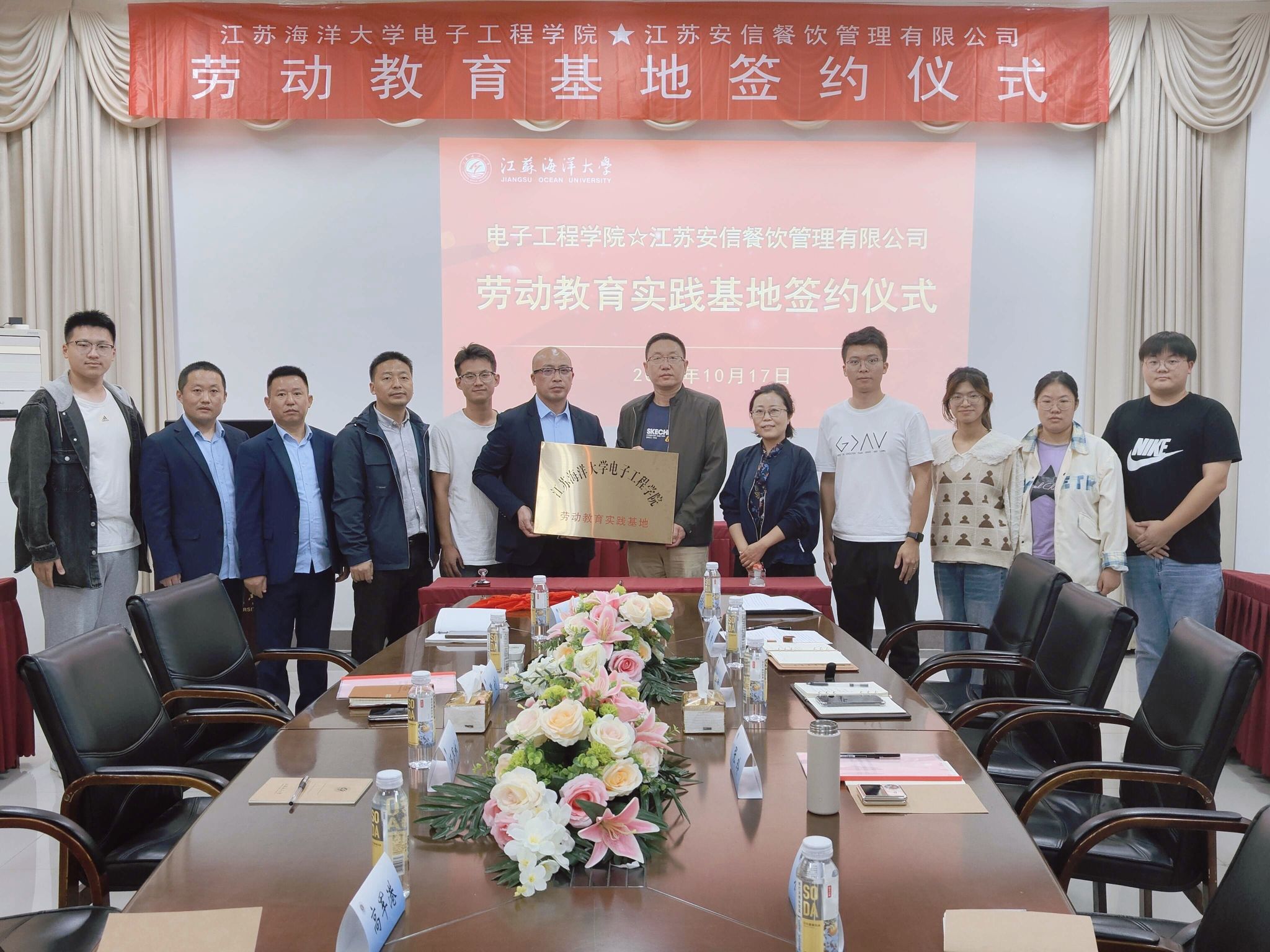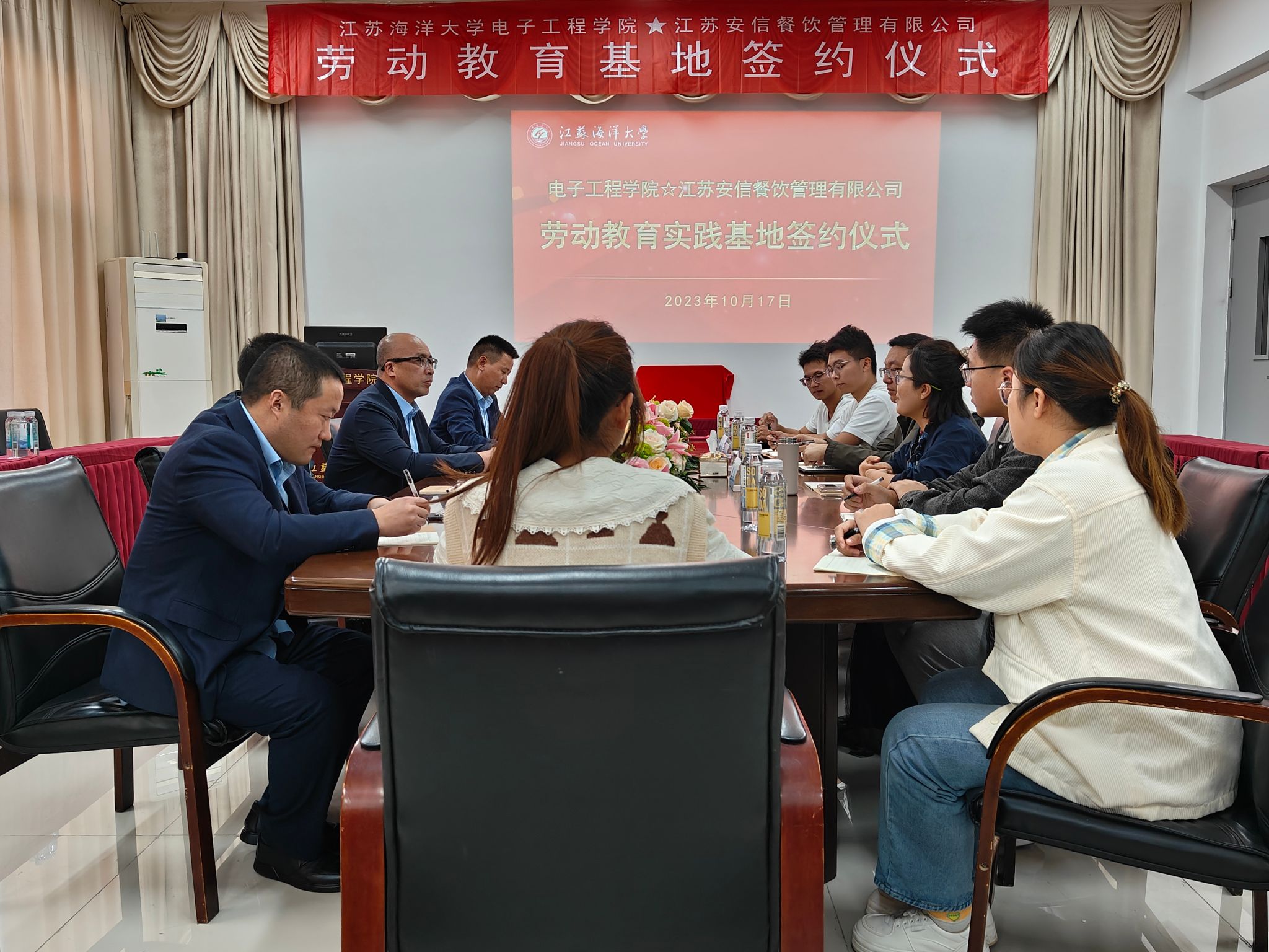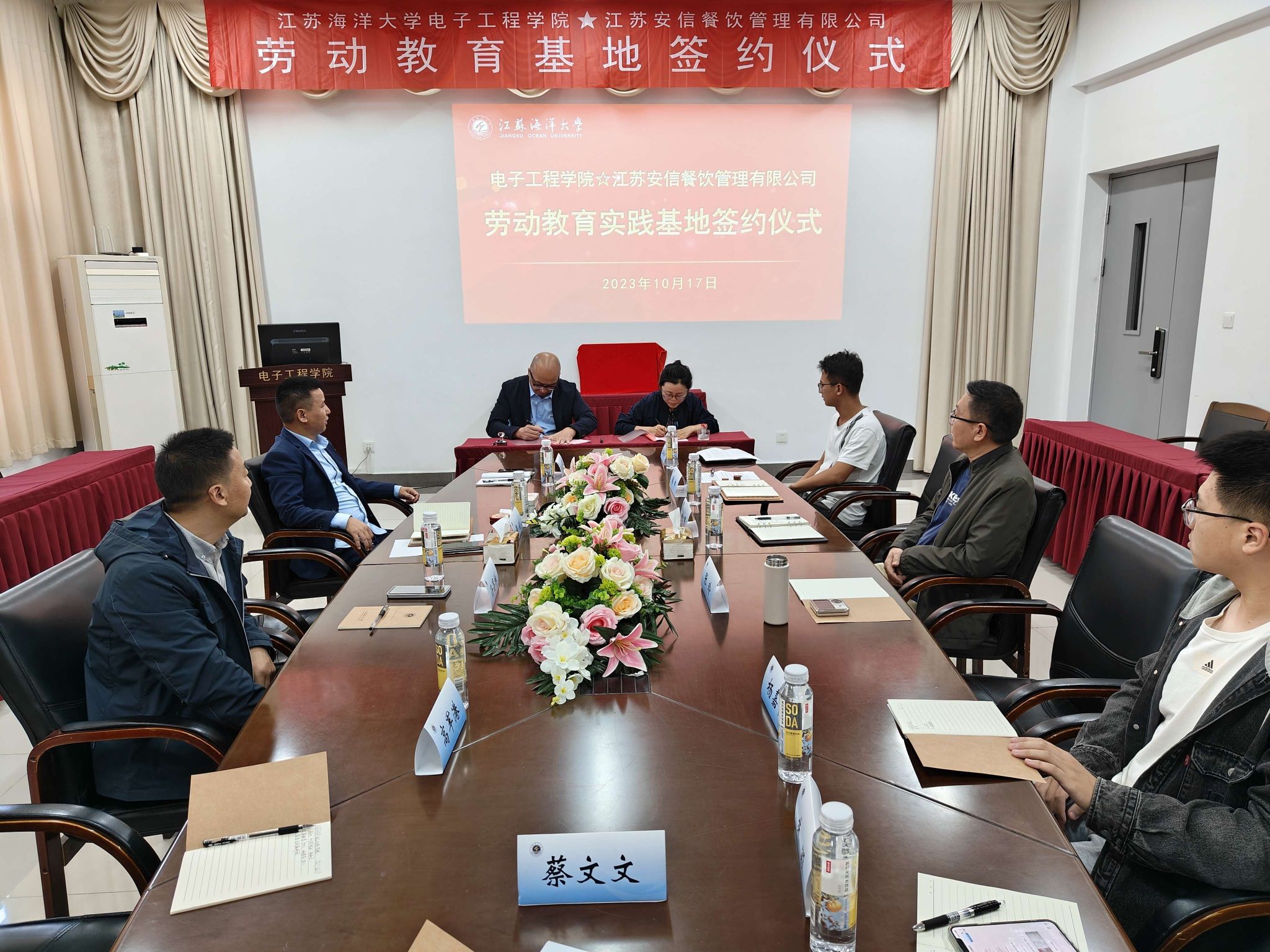 10月17日,威廉希尔中文官网与江苏安信餐饮管理有限公司williamhill中国官方网站第二食堂共建劳动教育实践基地签约仪式在电子楼314举行,后勤管理处教师代表、江苏安信餐饮管理有限公司代表、威廉希尔中文官网师生代表参加。