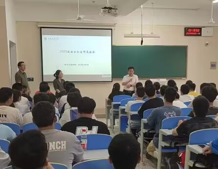 2023年9月9日下午,关于2023级本科新生与老师见面会在文华楼顺利召开。此次见面会以专业为单位,分别在5个教室举行,公司党政领导、各系主任、专业负责人、新生班主任、辅导员和2023级全体本科新生参加。