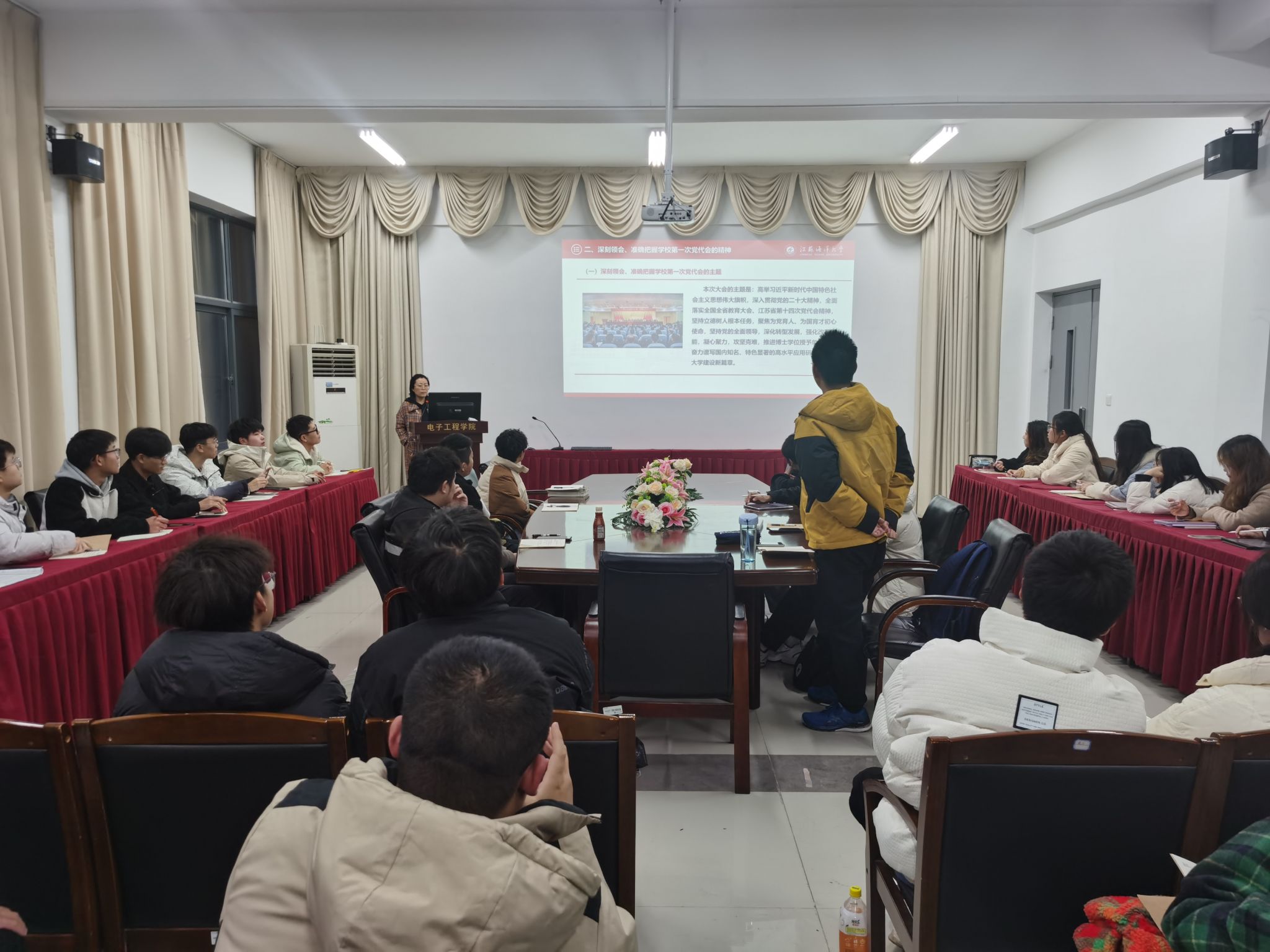 张玲首先阐述学习宣传贯彻学校第一次党代会精神的重要意义;接着重点介绍学校第一次党代会的主题,过去五年来的发展成绩和基本经验,学校改革发展面临的形势、机遇和挑战,今后一段时期学校事业发展的指导思想和奋斗目标,今后一个时期学校改革发展的主要任务和工作举措,新时代全面提高公司党的建设科学化、制度化、规范化水平的部署和要求,带领青马学员深刻领会、准确把握学校第一次党代会的精神;最后,结合威廉希尔中文官网培养目标、实际情况,与学员们交流如何通过实际行动确保学习宣传贯彻学校第一次党代会精神取得实效。