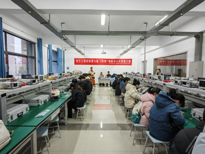 近日,公司举办科技节系列活动之“E科技”电路设计及焊接大赛。12月11日初赛结束后,共有18名同学进入复赛,12月15日下午,复赛于电子楼203实验室举办,于敬玲、韩申老师担任评委。