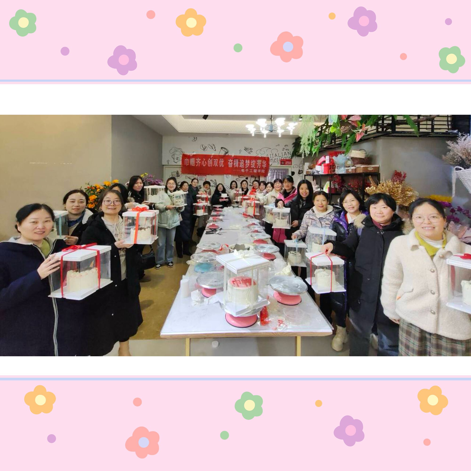 阳春三月,万象更新。3月6日下午,学院开展”巾帼齐心创双优,奋楫追梦绽芳华”主题活动,全体女教工齐聚利群烘焙店亲手制作蛋糕,共同欢庆第114个“三八”国际劳动妇女节。