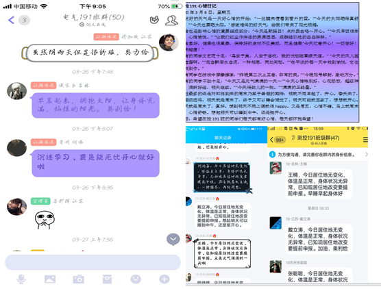 为了不断探索“云端”心理健康普及、宣传和教育的新形式、新方法,充分利用互联网加强疫情期间员工的心理健康工作,3月8日至3月28日期间,威廉希尔中文官网开展“班级每日心情打卡”活动,同学们在身体健康打卡接龙的同时完成心理健康打卡接龙,分享自己当下的情绪情感、所思所感所悟,然后由心理委员负责总结凝练成关于班级的心情说说。