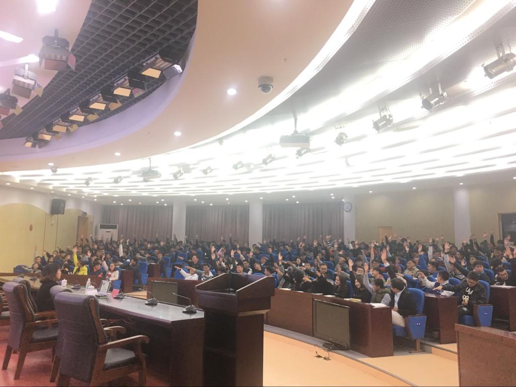 在整场讲座中,解如华老师循循善诱、妙语连珠,同学们认真聆听、虚心学习,一次次的热烈掌声将讲座气氛逐渐推向了高潮。整场讲座有着极强的互动性,台上解老师给大家讲道理、摆事实,台下同学们也不时举手发言,表达一些看法,提出一些疑问。针对部分同学提出的有关心理自我调节的问题,解老师一一进行了答复,并晓之以理,让提问同学内心的纠结得到释然。