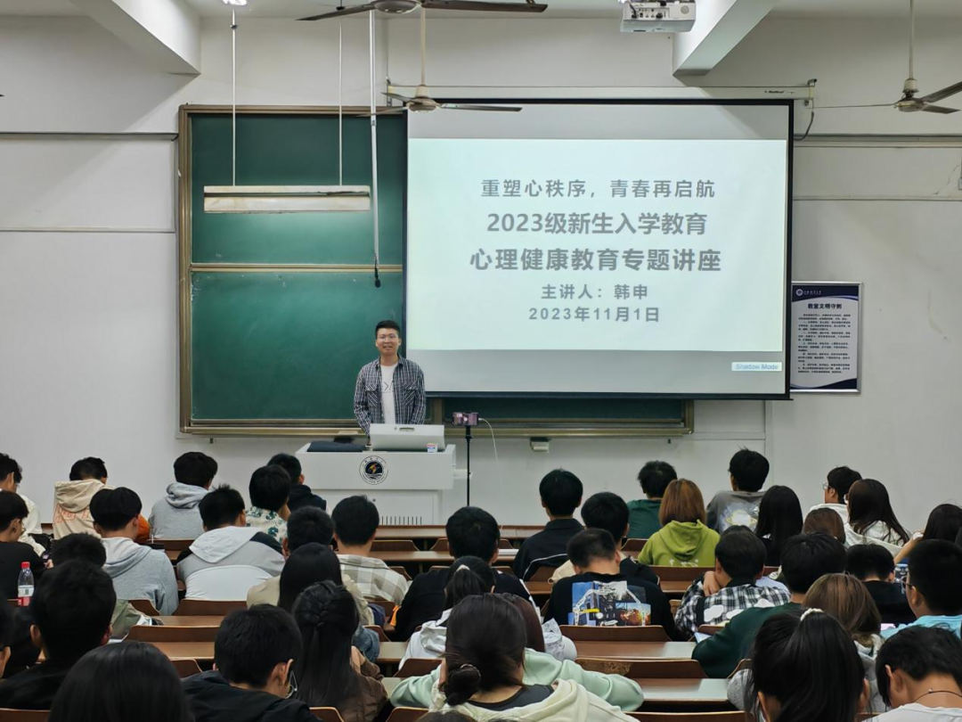 11月1日,威廉希尔中文官网于文通楼224、226开展“重塑心秩序,青春再启航”2023级新生入学教育之心理健康教育专题讲座。本次讲座由心理辅导员韩申主讲,2023级全体新生参加。