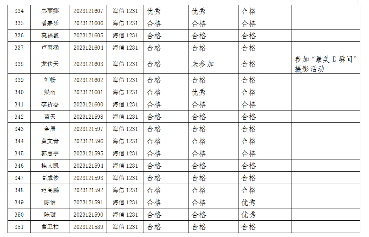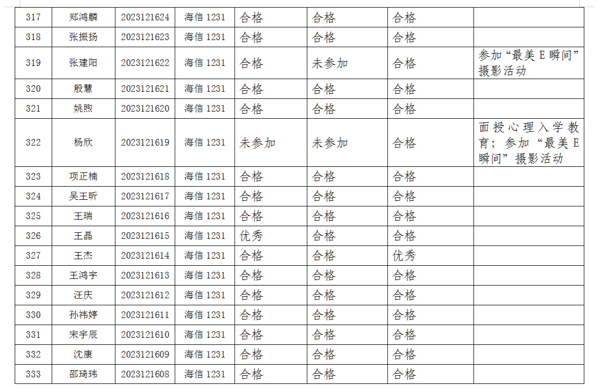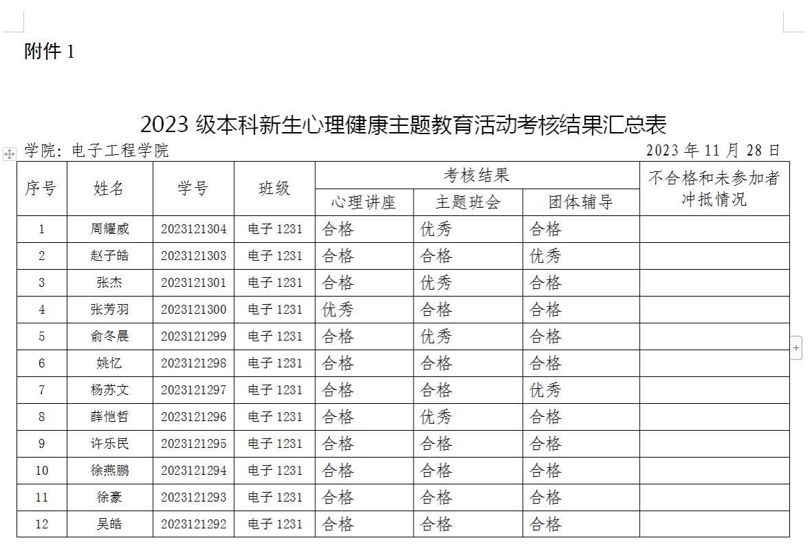 根据《williamhill中国官方网站2023级本科新生心理健康教育实践学分认定实施办法》相关要求,2023级新生入学后第一个学期心理健康教育工作已经圆满完成,现将心理健康教育实践学分认定结果公示如下。