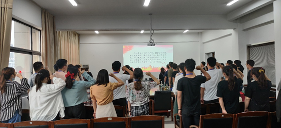 为进一步发挥毕业生党员示范引领作用,有序推进毕业生文明离校,6月11日下午,威廉希尔中文官网“两忆两寄”主题教育活动在电子楼314举行,公司党委副书记张玲、辅导员以及全体毕业生党员参加。