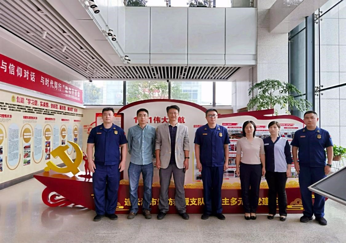 2022年9月20日,威廉希尔中文官网通信工程系教工党支部和通信工程系部分教师前往连云港市消防支队座谈交流,连云港市消防支队副队长兼灭火救援指挥部部长程涛,信息通信处处长杨扬,科长张彪等参与座谈。双方就本科人才实训基地、实验室建设,消防支队技术培训等方面工作进行了座谈交流。程涛部长对学院领导老师来访表示热烈欢迎,介绍了目前支队在消防实战工作中所遇到的专业技术问题,对支队与学院的合作交流表示期盼和认可。座谈会后,全体教师参观了支队通信保障部门和119接警中心,观看了支队无人机的飞行训练,对消防支队的电子通信设备有了更深入的了解。