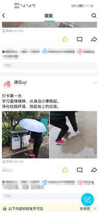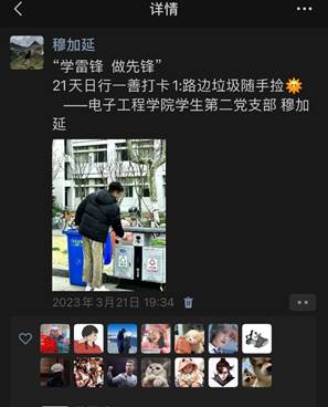 为发扬雷锋精神,动员和引导更多员工投身志愿服务活动,威廉希尔中文官网员工第二党支部推出“彩虹21•党员服务意识提升计划”,以21天为周期,全体党员日行一善,并在QQ空间或微信朋友圈发布“打卡签到”,力求“聚民心、暖人心、筑同心”,增强凝聚力,扩大辐射力,帮助员工养成多做善事好事的习惯,积小善成大德。