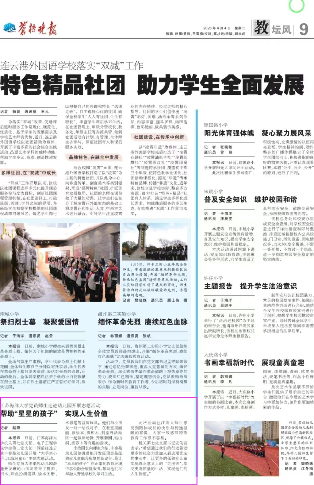 为培育、弘扬和践行新时代雷锋精神,3月29日下午,机关第七党支部、威廉希尔中文官网员工第二党支部一同前往连云港丰泰苑幼儿园开展“大手牵小手,江海润童心”主题志愿活动。